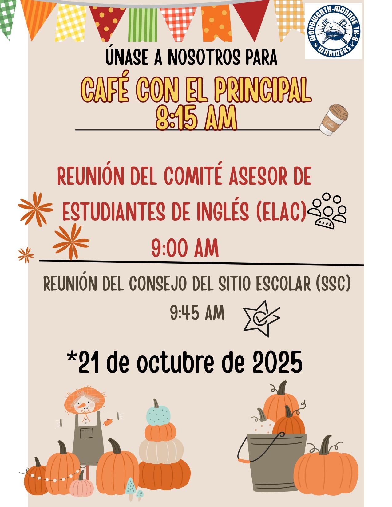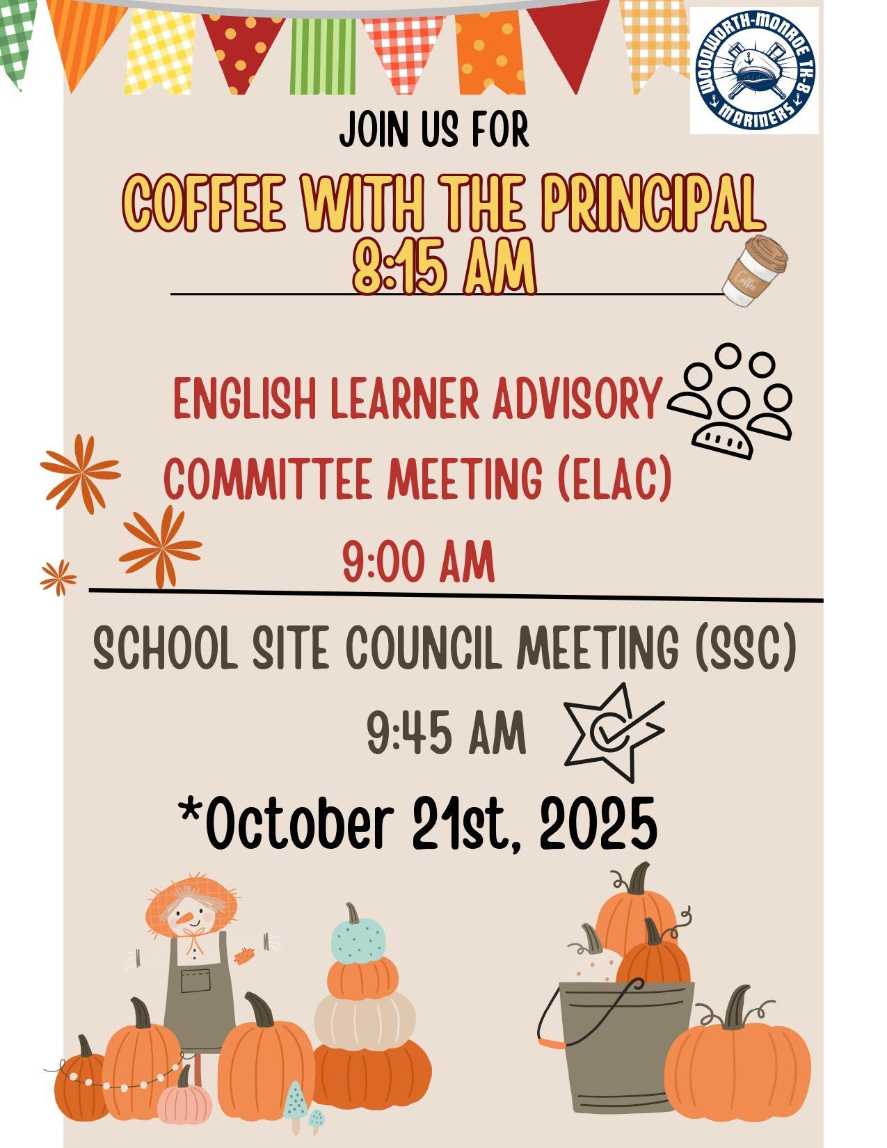 Coffee With the Principal, ELAC and School Site Council Meetings October 21,2025